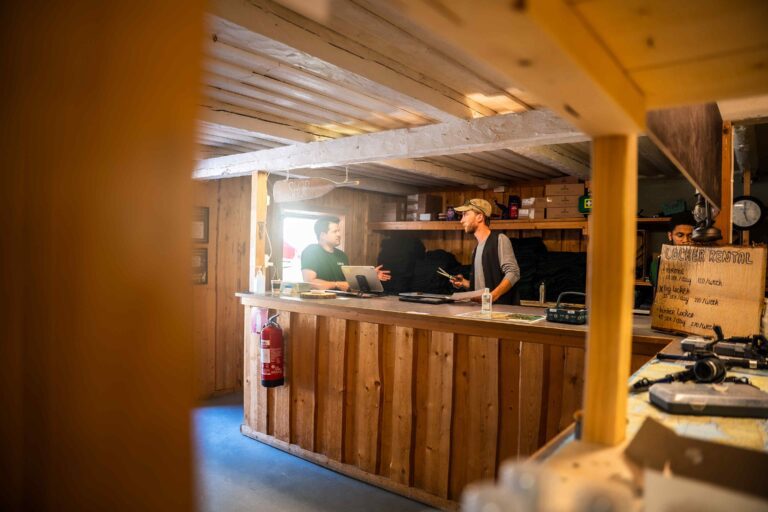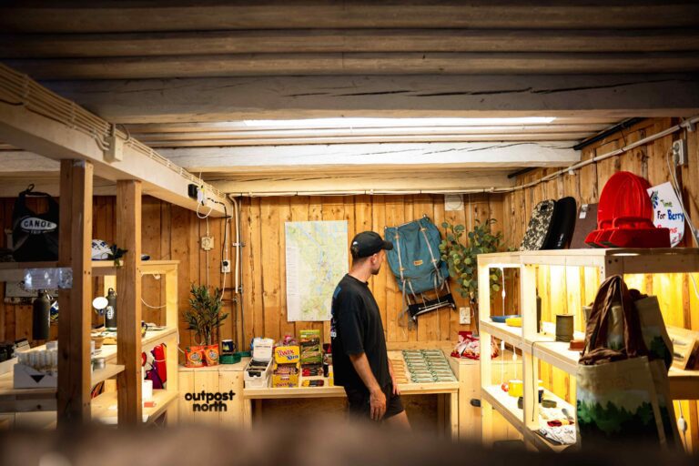 Checka in, få lokala ruttips och ordna med det sista i ett och samma stopp. Hämta snacks och kalla drycker, samt nödvändigheter för vandringen – och hyr grundläggande camping- och fiskegrejer (t.ex. tält, liggunderlag, Trangia-köksset). Ta med en liten souvenir från Outpost North innan du ger dig av.