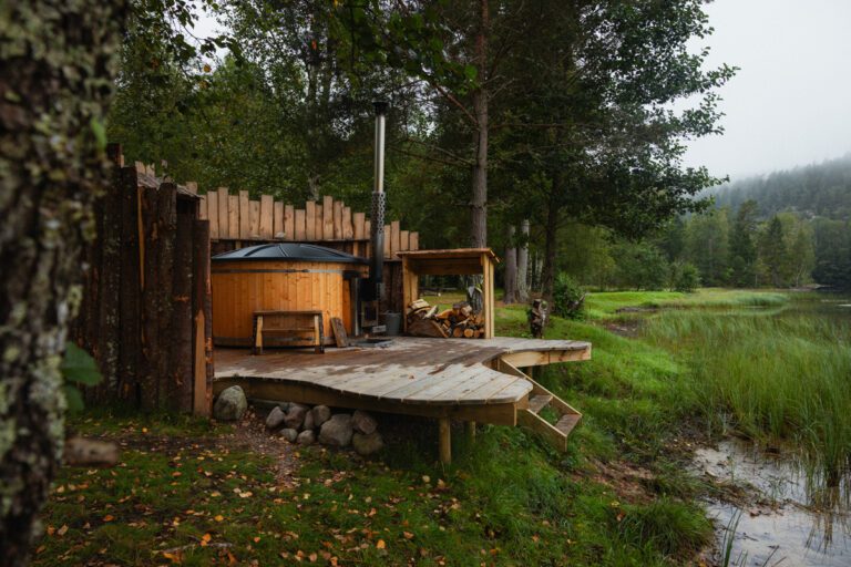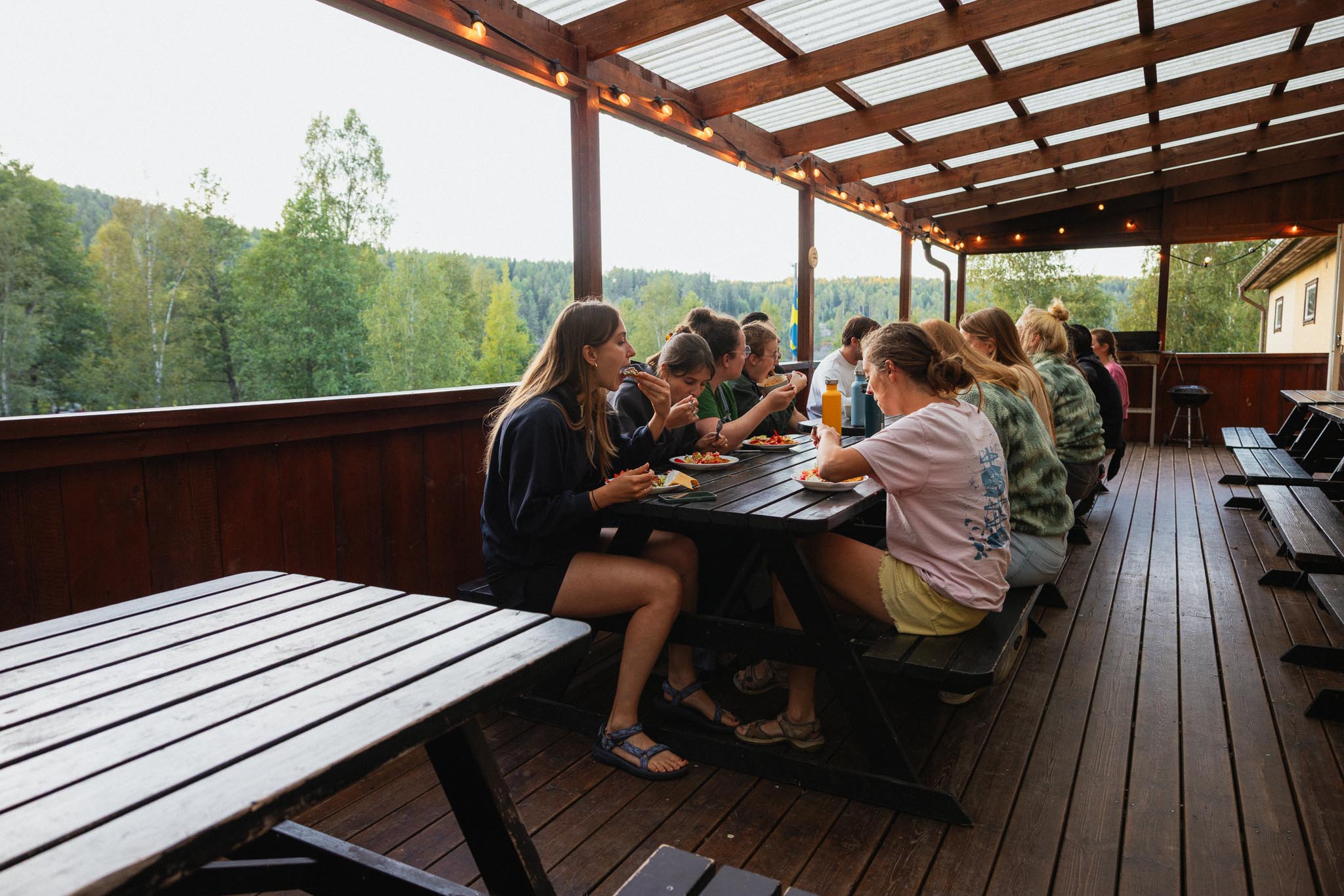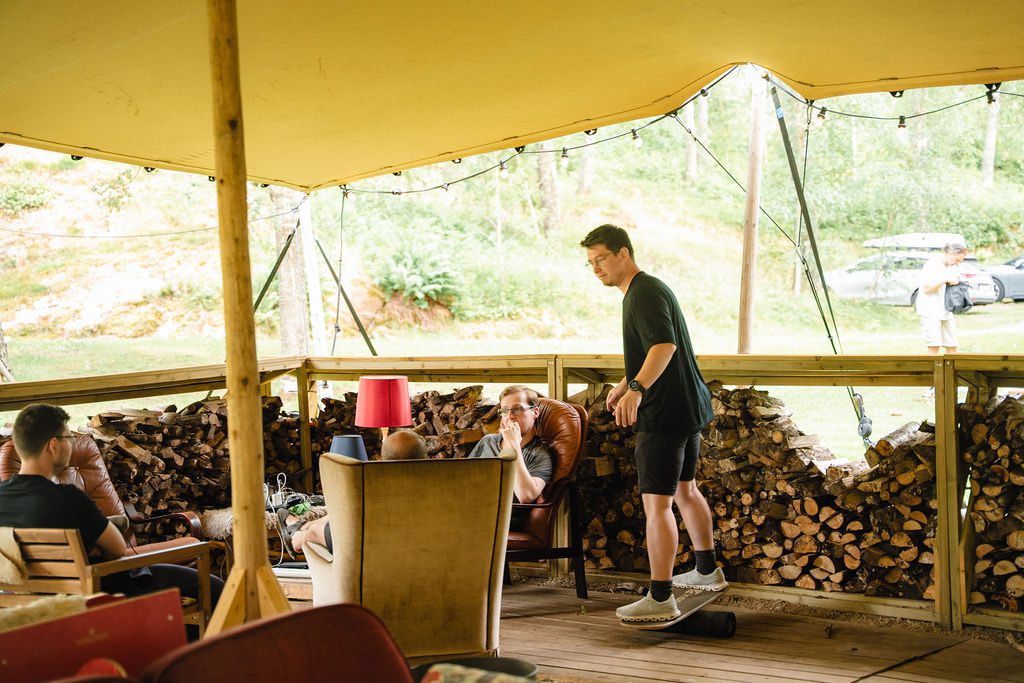 (Outdoor lounge) – En flexibel, väderbeständig plats för kaffe, ruttplanering och möten med andra gäster. Här hittar du även spel, ved och på kvällarna en lägereld.